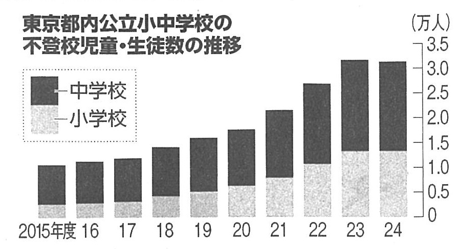 一方、都内の公立小中学校における不登校だった児童・生徒は3万1,335人で、2023年度より391人減少しています。子どもが安心して登校できる環境が整備されたことで、増加率の抑制につながったとしています。教室で学びづらい子どもが過ごす校内別室や、授業を持たずに不登校の生徒に対応する教員を配置しています。