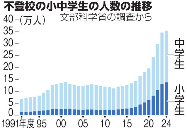 背景には、新型コロナウイルス禍による生活の乱れ、教員の不足や若返りによる支援の不十分さ、無理に通学させる必要はないと考える保護者の増加など、様々な要因があると考えられています。文部科学省は、柔軟なカリキュラムを認める学びの多様化学校を増やすなどし、居場所の確保や学校復帰への支援を急いでいます。インターネット上のいじめの増加も問題視されています。
