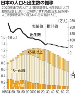 人口を維持するには、合計特殊出生率で2.07が求められます。しかし、2024年の出生率は1.15で、国立社会保障・人口問題研究所の将来の中位推計では、人口が1億人を割り込むとみられる2056年には出生数は51万3千人になるとみています。