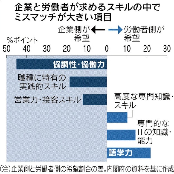 OECDによれば、成人の能力調査で日本はフィンランドに次ぐ2位ですが、時間当たりの生産性はG7で最下位です。能力の高さが労働生産性に結び付いていません。この要因の一つはリスキリング(学び直し)を巡る企業と労働者のズレです。