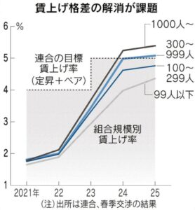 連合は、2026年の春闘の目標賃上げ率を前年と同じ5%以上にすると発表しています。春闘の結果は、国家公務員の給与水準を示す人事院勧告や最低賃金を決める際の参考となり、労働組合がない企業の賃金にも影響を及ぼします。