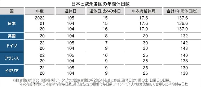 休暇の取り方の欧州との差異