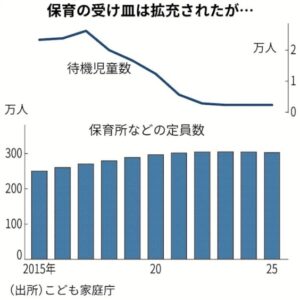政府は、待機児童の解消に向け保育所の整備を急ピッチで進めました。0~2歳児保育や延長保育を拡充し、2015年には保育時間を1日8時間から11時間に延長しました。受け皿の拡充は、女性の就業率向上に貢献する一方、保育士不足に拍車をかけています。