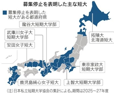 保育士などを育成する学び舎である短期大学が急減しています。2027年度までの3年間で約50校が学生募集を停止する計画です。四年制大学を志望する女性が増え、学生減で財務が悪化しています。地域からは介護や保育を担う人材の確保が一層難しくなるとの懸念が出ています。