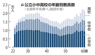 第2次ベビーブーム世代が学齢期を迎えた1980年代に大量採用された世代が退職時期を迎え、各教委が新規採用を拡大させました。若い世代が多くなり、産休や育休を取得する教員が増えています。少子化を見据えて、2000年頃になると正規教員の採用は抑制され、臨時講師などの非正規教員で不足を補う傾向が強まっています。