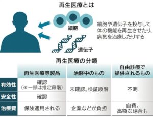 再生医療をうたい細胞を投与し死亡などの重大事故につながった例が2024年から相次いでいます。厚生労働省が承認する場合と違い、クリニックが自由診療で提供する際は、安全性や効果が十分検証されていないケースがあります。