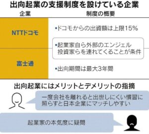 終身雇用、年功序列の慣行が根強く残る日本において、安定した大企業を辞めて起業するインセンティブは乏しいとされています。銀行や総合商社を経て起業する人は増えているものの、家族らの理解を得るために労力をかけていることになります。出向起業はこうした障壁を越える一つの方法といえます。出向元企業の知名度や信頼性が事業展開の後押しになっている面もあります。