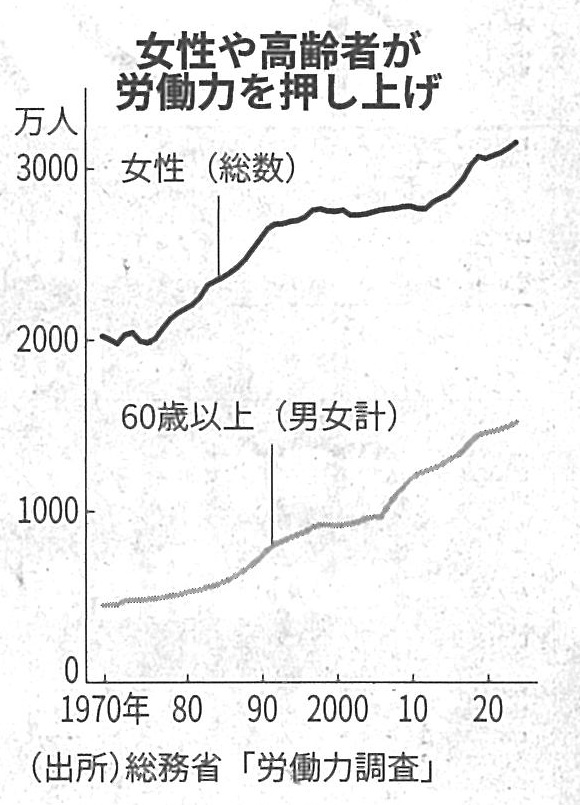 働く女性の増加が大きく、11月は3,228万人で、1年前より46万人増えています。45カ月連続で前半を上回っています。最低賃金の上昇で働きに出る人が増えたとみられます。長時間労働の是正など就労環境の改善も追い風となっています。労働市場に参加するシニアも増えています。65歳以上の労働人口は男女合計で961万人となり、1年前より15万人多く、1995年に445万人だった65歳以上の労働力人口は30年で2倍以上に膨らんでいます。