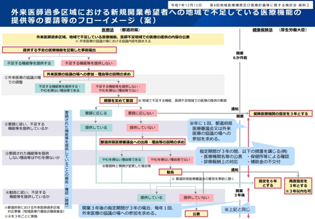 都市部に集中する医師の偏在対策を盛り込んだ改正医療法が、2026年度から順次施行されます。改正医療法は医師の偏在を緩和するため、都市部などでの開業を希望する医師に対し、地域で不足する救急や在宅医療など必要とされる医療分野を担うよう都道府県が要請できるようにしています。