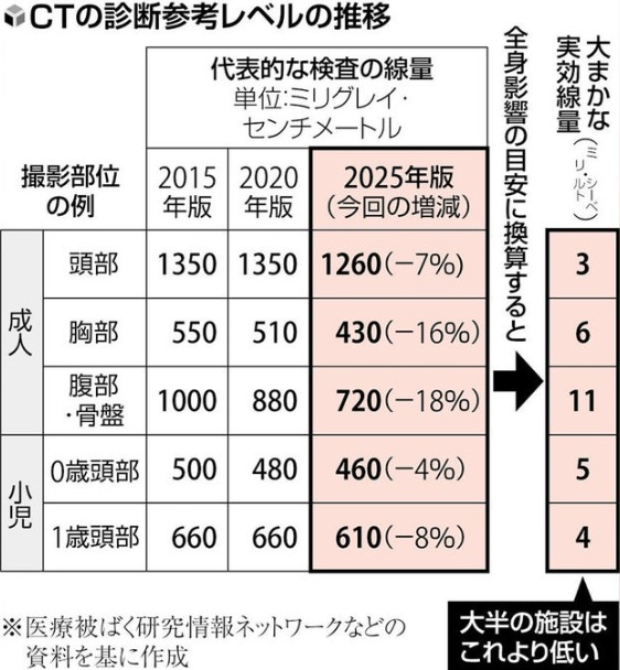 線量が高い方が画質が良くなる傾向があります。必要な画質は診断目的ごとに違います。線量の抑制を図る態勢が根付いていないと、不要に精細な画像を高い線量で撮りがちになります。日本では、医療被ばく研究情報ネットワークが2015年に初めて線量抑制の目安である診断参考レベル(DRL)を設定し、5年ごとに改定してきています。医療被曝の大半を占めるCTの線量も顕著に低下しています。