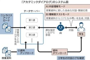 AI時代の教育は、公平なAI環境に配慮しながら、AI外注のスキルとともに、学生自身の思考力も育てるという難しいかじ取りを迫られています。哲学教育は思考の教育です。大学の哲学の授業に、授業特化型AIであるアカデミックダイアログが活用されています。このシステムは、教員がシラバスのデータをアップロードするだけで、各回の授業に特化したAI環境を自動的に構築します。教員が各回の授業資料をアップロードすると、学生はその資料に基づいてAIとテキストチャットができます。