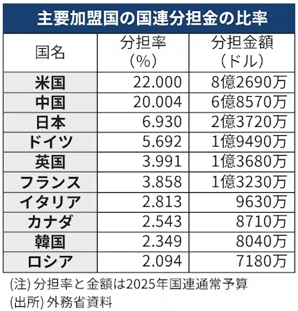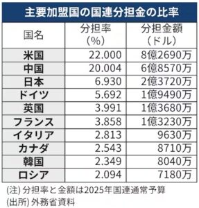 米国の分担率は20年以上にわたって22%が続いていますが、トランプ米大統領は国連への拠出を大幅に制限しました。米国の未払い金は、国連平和維持活動予算も合わせると足元で約30億ドル(約4,450億円)に達しています。国連憲章は、加盟国が過去2年間の分担金額以上を滞納している場合は総会での投票権を認めていません。