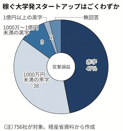 経済産業省の調査によれば、大学発スタートアップの新陳代謝が乏しいとされています。総数は10年で3倍に増え、5,000社に達しています。存続率は9割を超えています。米国は知的財産の有無などで区分けし、2割台で推移しています。成長力のある企業がどれだけあるのか、日本も実態把握が求められています。