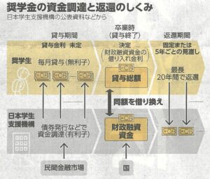 学生側は、金利の動向に応じて固定か見直しかの方式を卒業前までに選択します。また、在学中は国の補助で無利子となる仕組みで、返す時も3%超の高い利率を心配しなくて良いことになります。一定の保護策はあるものの、返す利率が分からずに借金し始めるという、一般のローンにはない独特の悩みを抱えることになります。