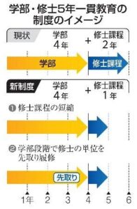 今も優秀な学生については、修士までを計5年で修了できる特例があります。慶應大学など一部の大学が特例を活用した教育プログラムを提供しているほか、東京大学は文理融合型で5年一貫の新課程のカレッジ・オブ・デザインを創設する計画です。