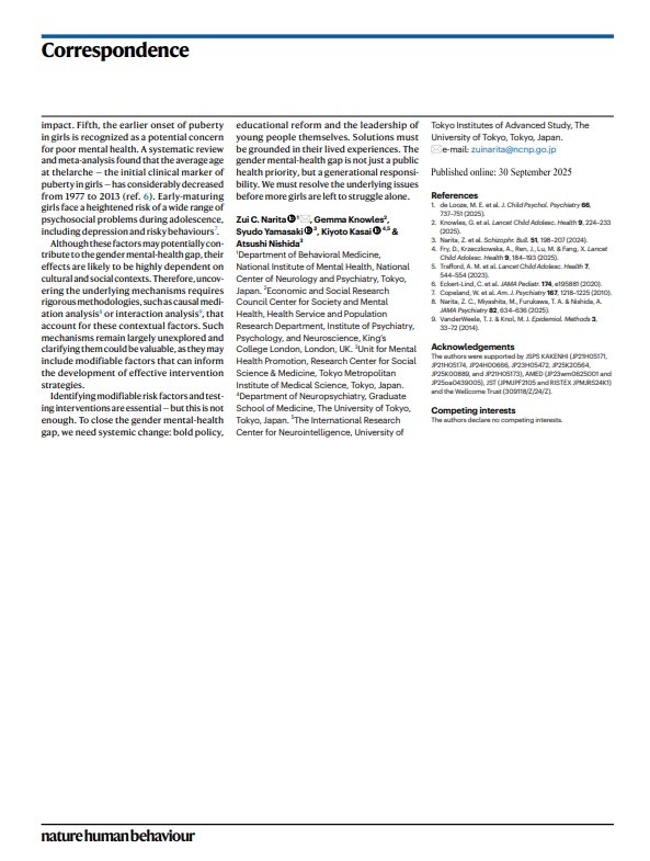 国立精神・神経医療研究センターらの研究によれば、思春期の女子のメンタルヘルスが悪化し、男子との差が拡大している。日本では昨年、20歳未満の女子の自殺者が初めて男子を上回りました。2024年の20歳未満の女子の自殺者数は430人で、男子の370人を初めて上回りました。10年前は男子373人、女子165人で、男子が横ばい傾向なのに対し、女子はここ5年に急増しています。
