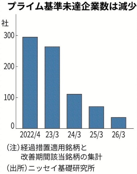 東証プライム基準未達企業の減少