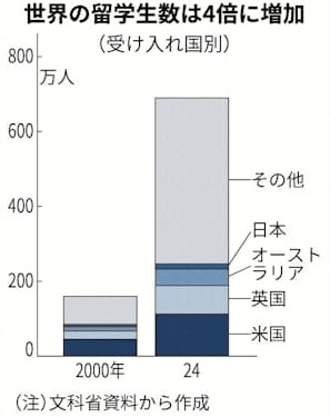 東北大学は、留学生の授業料を2027年度から1.7倍に引き上げると発表しています。増収分は留学生への支援強化に充てるとしています。欧米では、受益者負担の考え方に基づいて自国の学生の2~3倍に設定する大学が珍しくありません。授業料は学生が留学先を選ぶ際の大きな判断材料となります。7割の値上げをしても留学生を増やせると判断した背景には、国際的な留学市場の拡大があります。