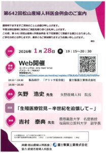 第642回松山産婦人科医会例会がWeb開催されました。「生殖医療管見 ― 半世紀を追懐して ―」と題して講演をさせていただきました。