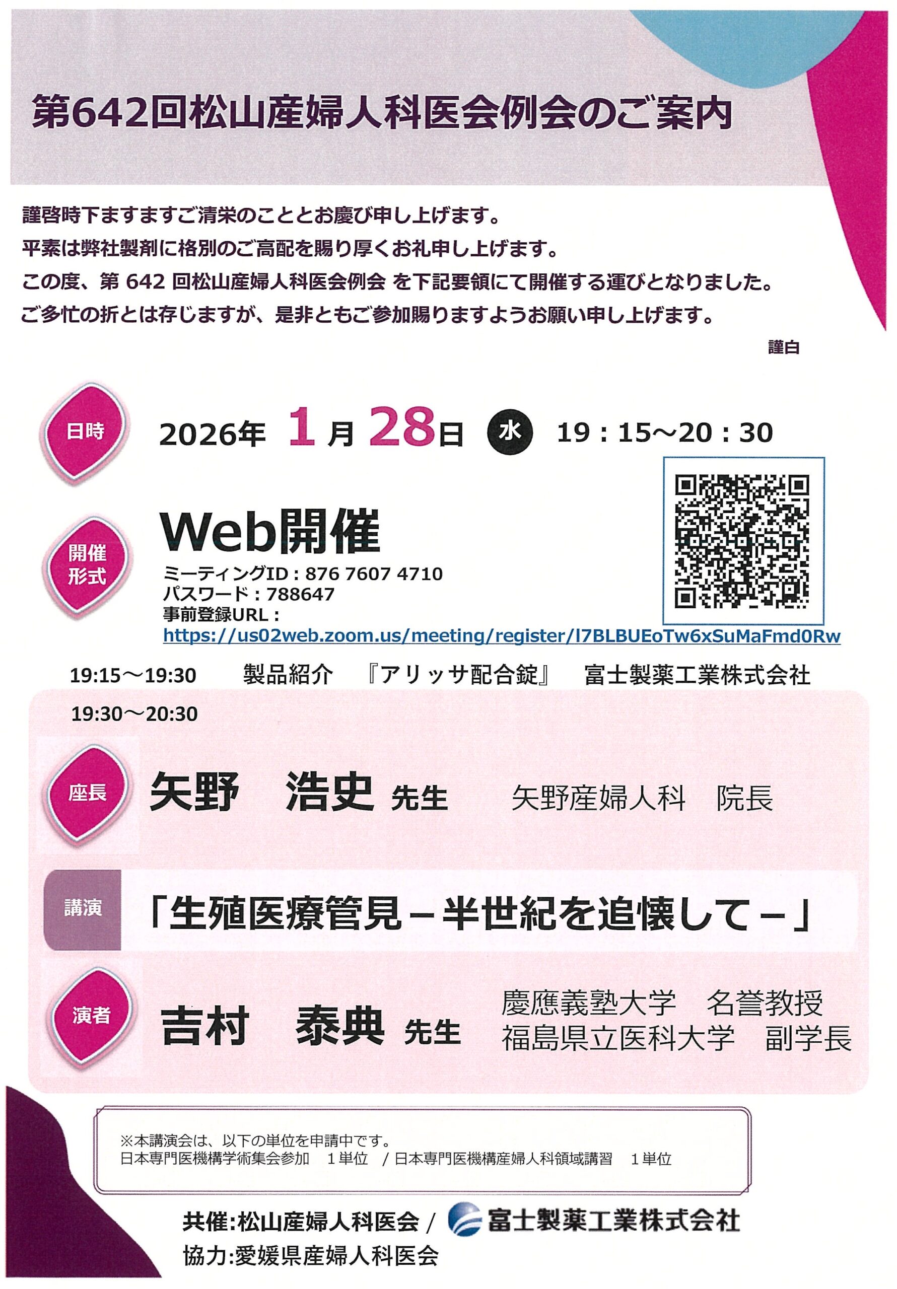 松山市内の多くの産婦人科医の先生方にWeb参加いただきありがとうございました。