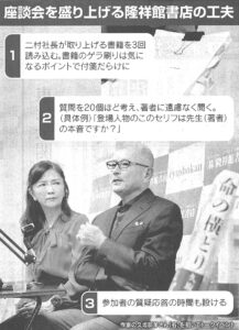 デジタル化で紙の出版市場が5年で2割縮小するなか、中小の書店が客に本を手に取ってもらうサービスに力を入れています。著者の本音に切り込む座談会を開いたり、店主が客に読んでもらいたい書籍を1万円分選んだりします。面白い本を見抜く目利きを武器に書店のファンをつくり、売上高の維持や減収率の抑制を目指しています。