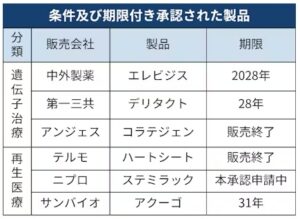 販売後に本承認を得た製品はまだ存在していません。英科学誌ネイチャーが2019年に効果が実証されていない治療法は患者に販売されるべきでないと主張する社説を掲載するなど、制度の是非を巡る議論も起きています。