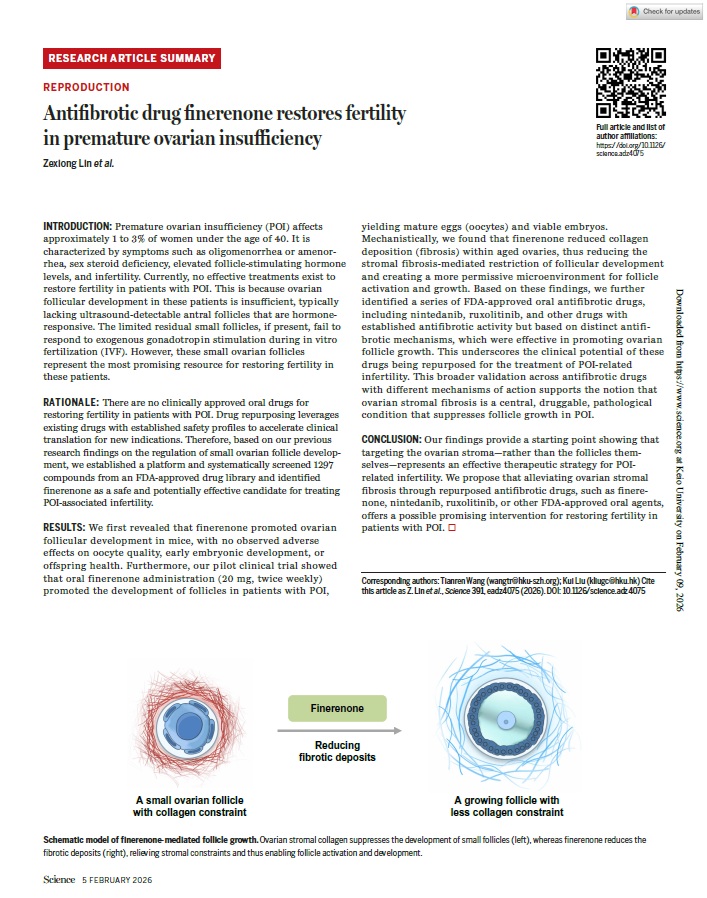 順天堂大学らの研究チームは、若くして閉経する早発閉経の治療に、腎臓病や心不全の治療薬であるフィネレノンが有効であることをマウスを用いて示しています。早発閉経は様々な原因で、卵子が入った卵胞の発育が止まる病気ですが、フィネレノンが卵胞を活性化させる効果があることを見つけました。