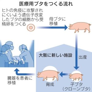 移植用のブタの生産で実績がある米バイオ企業のイージェネシスと協力します。ヒトの免疫に攻撃されにくいよう遺伝子を改変したブタの細胞の提供を受け、クローンブタをつくります。新施設で母ブタに出産させ、ドナーブタとなる子ブタを育てます。まずは臨床試験向けにブタを生産します。ブタが一定の大きさに育った段階で、臨床試験を実施する医療機関の近くに子ブタを運び、目的の臓器を取り出すことになります。