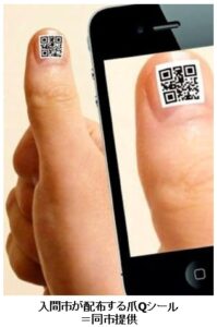 埼玉県入間市は、認知症の疑いのある高齢者やその家族に、7.5㎜四方のQRコードを印字した爪Qシールを無償配布しています。同市の代表電話番号や登録された高齢者に割り振った身元特定番号が表示されています。全国で450以上の自治体が同様のQRコードを活用しています。