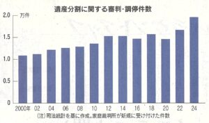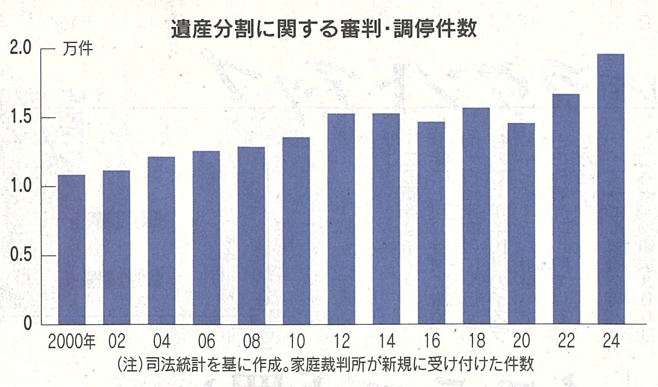 全国の家庭裁判所が遺産分割に関して受け付けた審判・調停は、2024年に約1万9,600件と、この20年で6割強増えています。遺言がないと相続人同士が分け方を話し合います。しかし、財産を平等に分割するのは困難です。遺言があれば原則、遺言に沿って分けることができ、親の望みなら遺産分割を受け入れやすい面もあります。