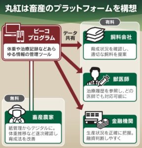 飼料価格の高騰も経済を圧迫しております。重労働が多い畜産業界でAIなど先端技術を用いて負荷を軽減し、生産性を高める動きが広がっています。丸紅は、牛の体重など育成情報を一元管理できるプラットフォームをつくり、数年内に国内牛の4割に当たる160万頭の登録を目指しています。畜産業界では、担い手不足や飼料高による経営難が深刻で経験や勘に頼らない畜産テックの重要性が増しています。