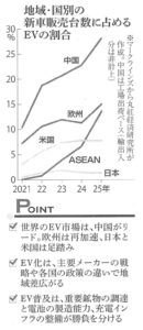 日本メーカーは、EV化が進む中国市場で苦しい状況が続くと思われます。日本の大手メーカーは、かつて販売台数のおよそ3分の1が中国市場でした。しかし中国での販売低迷が続いており、別の市場を強化する必要があります。