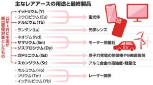 レアアースは工業製品に欠かせず世界中で必要とされている半面、供給をほとんど中国に依存する構図によって中国の外交上のカードになっています。現在日本に対する軍民両用製品の輸出規制強化を打ち出しています。家電製品から自動車部品まで幅広い製品に使われているだけに、もし供給が途絶えれば、日本でも多くの業種が打撃を受けることになります。