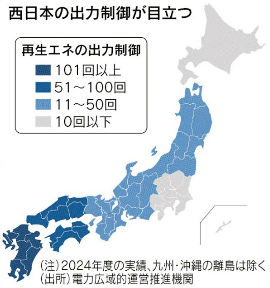 西日本では再生エネの供給拡大で出力制御が目ってきています。エネルギー基本計画は再生エネ比率を2024年度の23%から2040年度に40~50%まで高める目標を掲げています。足踏みする再生エネのもう一段の拡大には、ボトルネックとなっている送電網不足の問題を解決しなければなりません。