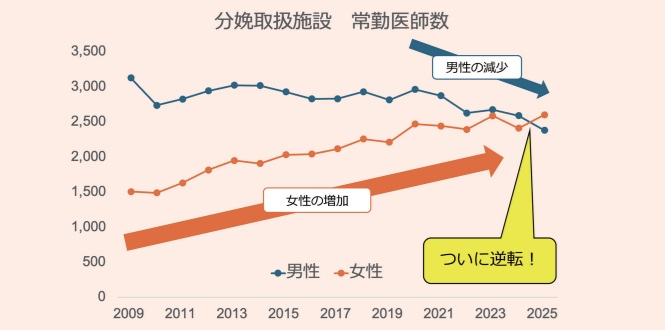 持続可能な周産期医療体制のため働き方改革は間違いなく必要ですが、一部の医師が恩恵を受ける一方で高次施設における管理職や中堅医師の負担が明らかに増加しています。産婦人科医療の担い手が変化してきている今、現場が疲弊しきる前に国や自治体の積極的な支援により高次施設から人が離れないための対策が求められます。