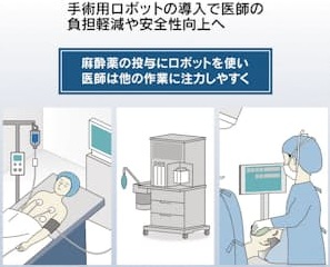 福井大学の研究チームは、ロボット麻酔システムを開発しています。麻酔薬の投与量を自動で調節するソフトで、2022年にプログラム医療機器として厚生労働省から承認を取得しています。今回開発したソフトは、全静脈麻酔時に、血圧や脈拍、脳波などの手術中の患者の状態に関する情報を活用し、シリンジポンプによる鎮静薬、筋弛緩薬などの麻酔薬の投与を自動制御することができます。麻酔科医の業務負担の軽減が期待できます。