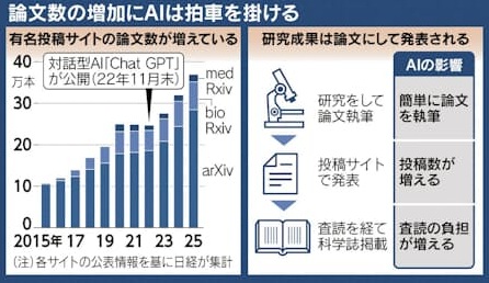 研究者は研究成果を論文にして発表します。まず執筆した段階で論文を投稿サイトに発表し、他の研究者から評価される査読を経て、科学誌に掲載されるのが一般的な流れです。質の高い科学誌に論文を多く掲載できれば、研究者の評価は高まります。この仕組みを揺さぶっているのがAIの存在です。