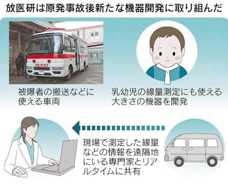 被曝医療を専門とする国の放射線医学研究所は、東京電力福島第1原子力発電所事故の教訓を糧に、甲状腺にある放射性ヨウ素を乳幼児に対しても測定できる機器を開発しています。専用車両の配備のほか、国内外の人材育成にも力を入れます。