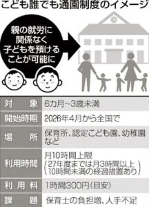 親が働いているかどうかに関係なく、子どもを預けられるこども誰でも通園制度が4月1日から全国で始まりました。生後6カ月~3歳未満の未就園児が対象です。子どもは家族以外の人たちと接することで成長が促され、親は育児負担の軽減や孤立の解消につながると期待されています。一方で、保育士など現場の人手は慢性的に不足し、業務の負荷が重くなることも懸念されています。